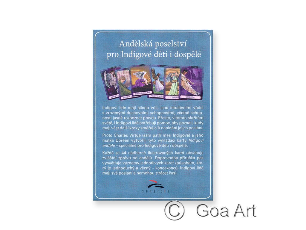 V sprievodnej príručke vykladacích kariet Indigoví andělé nám Doreen Virtue a Charles Virtue vysvetľujú význam každej zo 44 kariet v balíčku a dávajú nám anjelské rady pre Indigové deti aj dospelých.