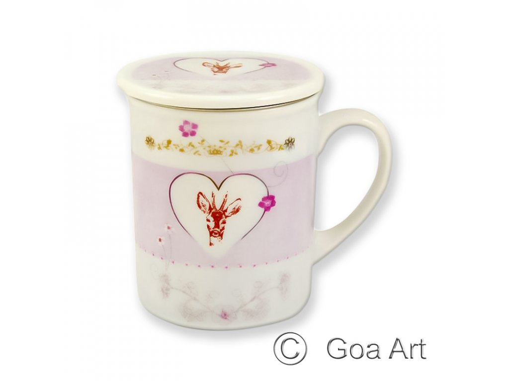 Porcelánový bylinkový hrnček s vrchnákom, nerezovým sitkom a motívom srdiečka.
