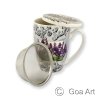 Porcelánový bylinkový hrnček s motívom levandule, porcelánovým vrchnákom a sitkom.