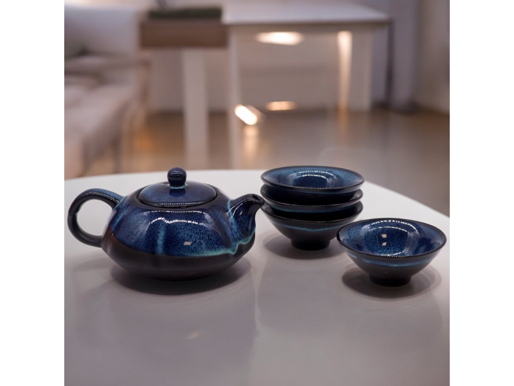 Čínska čajová keramická súprava obsahuje čajník a 4 ks šálok. Kapacita čajníka je 215 ml.