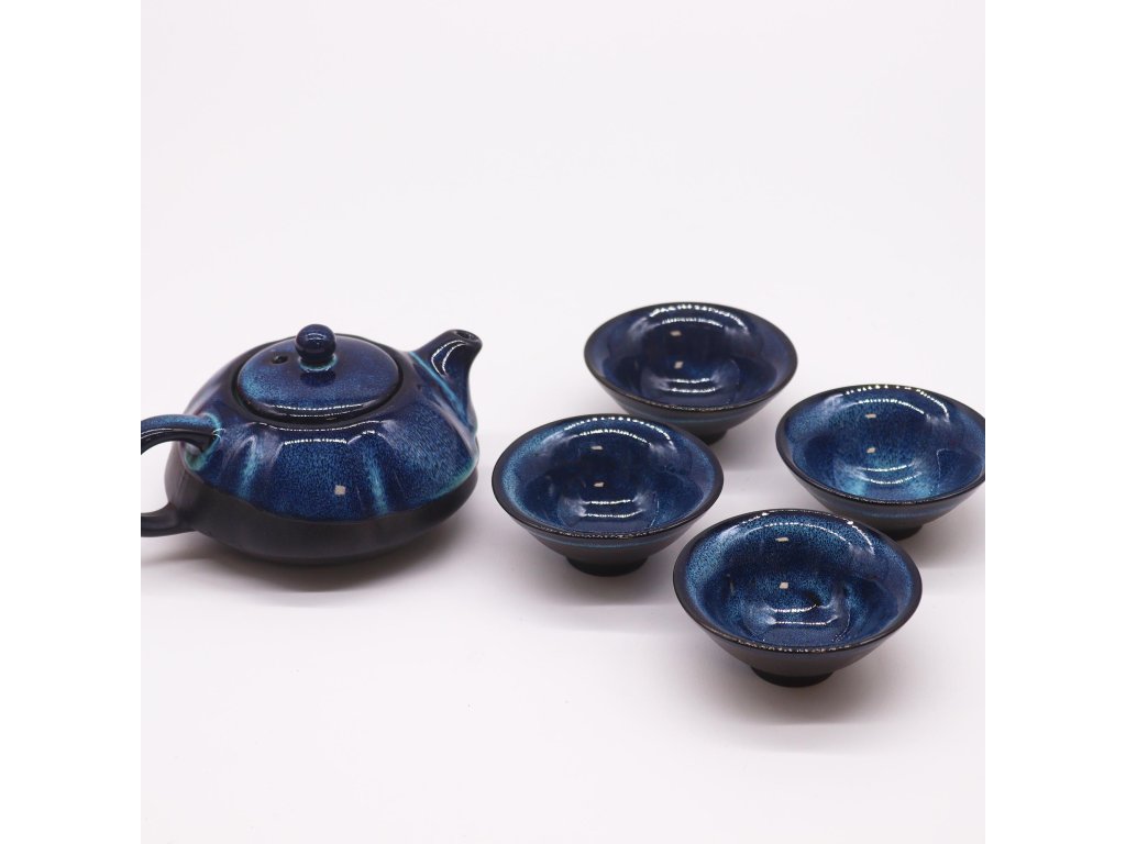 Čajový set bylinkový - modrý 215ml - čajník a 4 šálky