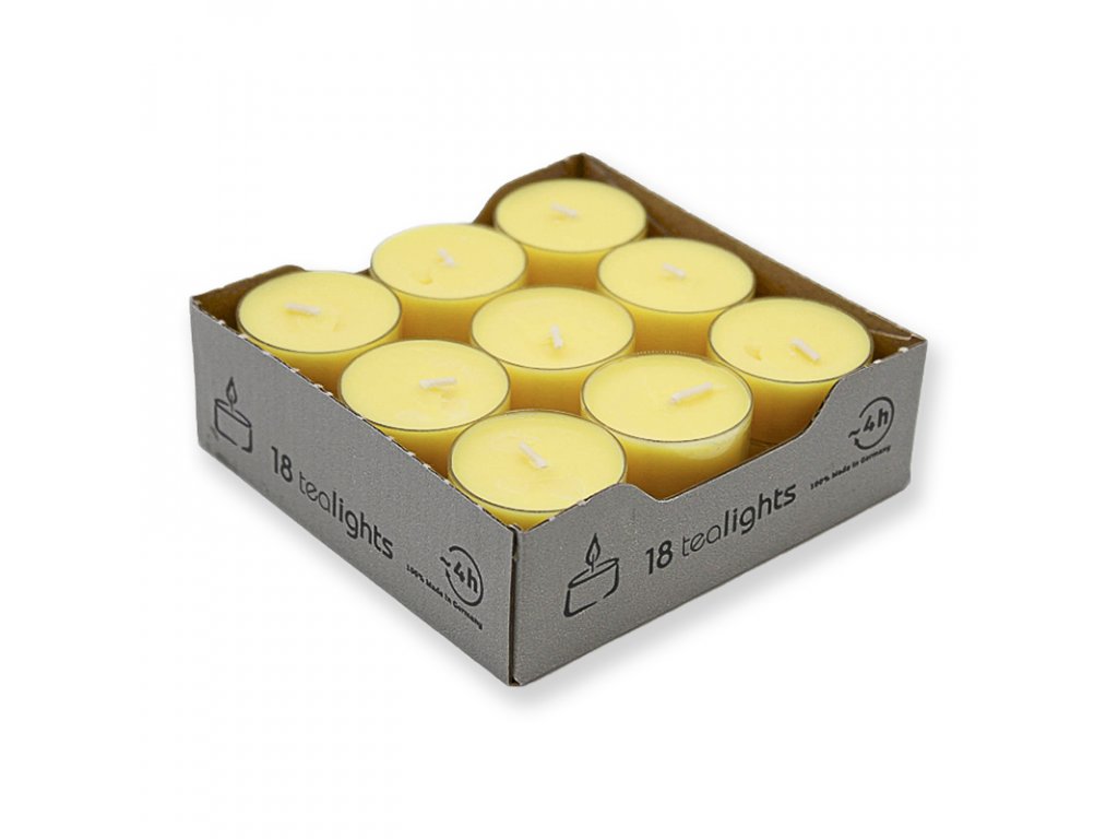 Krabička obsahuje celkom 18 žltých voskových čajových sviečok, každá s dobou horenia približne 4 hodiny.