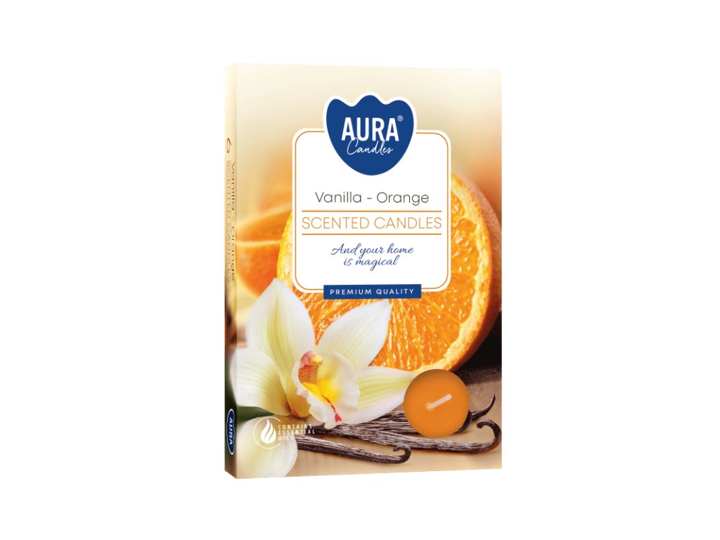 Sviečka čajová Vanilka - Pomaranč 6ks