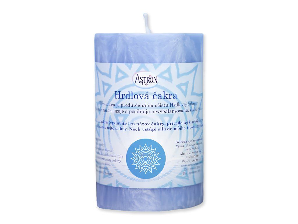 Táto sviečka je určená na očistu hrdlovej čakry. Harmonizuje a posilňuje nevybalansovanú, slabú čakru. Odporúča sa ľuďom, ktorí majú problémy s komunikáciou, nízkou sebadôverou a hanblivosťou. Sviečku používajte podľa potreby, podľa toho, ako sa cítite alebo akú silnú očistu chcete dosiahnuť.