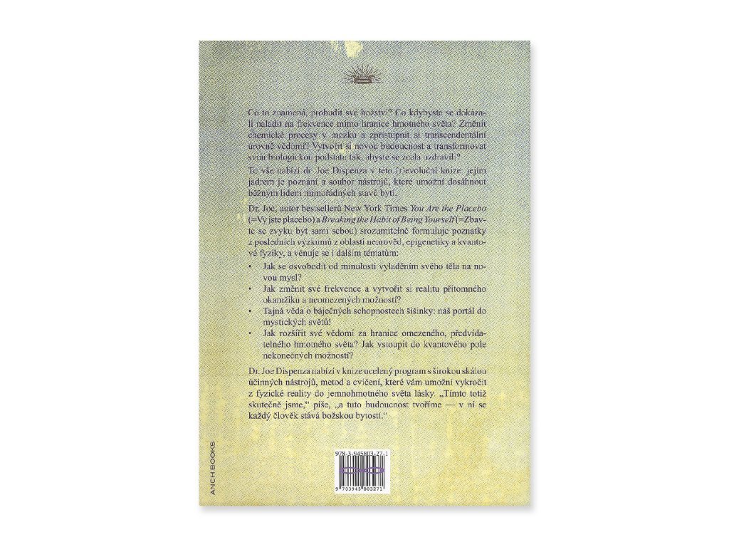 Dr. Joe Dispenza autor bestsellerov You Are the Placebo (=Vy jste placebo) a Breaking the Habit of Being Yourself (=Zbavte se zvyku být sami sebou) v knihe zrozumiteľne formuluje poznatky z posledných výskumov z oblasti neurovied, epigenetiky a kvantovej fyziky, a venuje sa aj ďalším témam: • Ako sa oslobodiť od minulosti vyladením svojho tela na novú myseľ? • Ako zmeniť svoje frekvencie a vytvoriť si realitu prítomného okamžiku a neobmedzených možností? • Tajná veda o báječných schopnostiach šišinky: náš portál do mystických svetov! • Ako rozšíriť svoje vedomie za hranice obmedzeného, predvídateľného hmotného sveta? Ako vstúpiť do kvantového poľa nekonečných možností? Autor ponúka ucelený program so širokou škálou účinných nástrojov, metód a cvičení, ktoré vám umožnia vykročiť z fyzickej reality do jemnohmotného sveta lásky. „Týmto totiž skutočně sme,“ píše, „a túto budúcnosť tvoríme - v ní se každý člověk stává božskou bytostí.“