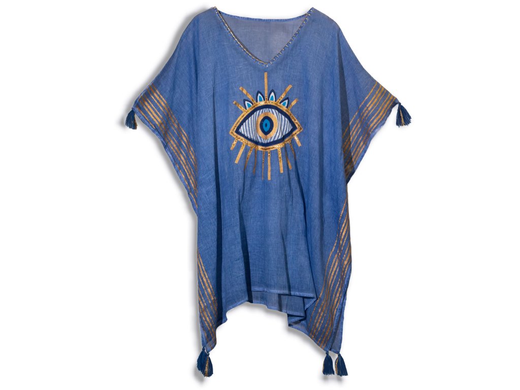 Nomád Sari - Kaftan Ručne Maľovaný - Zlaté oko - Modrý 90 x 100 cm