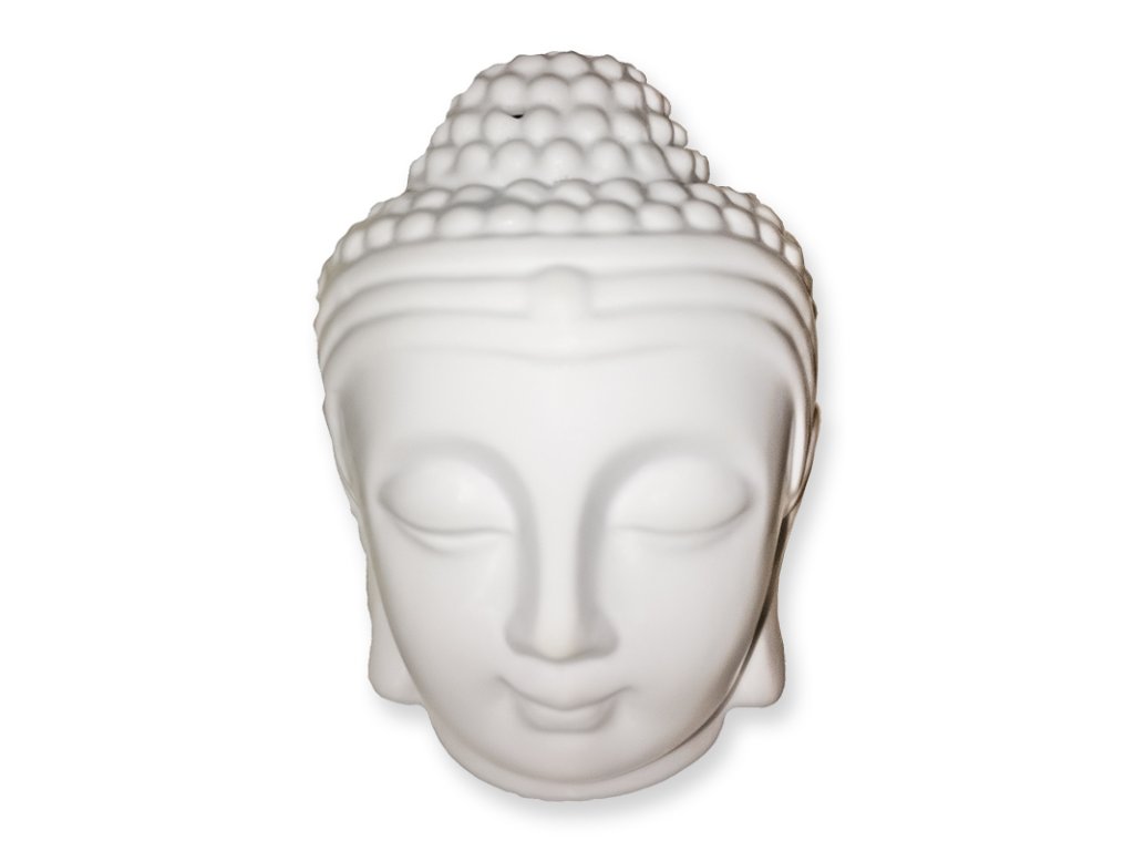Krásna a zároveň praktická keramická aromalampa v tvare Buddhovej hlavy v bielej farbe.