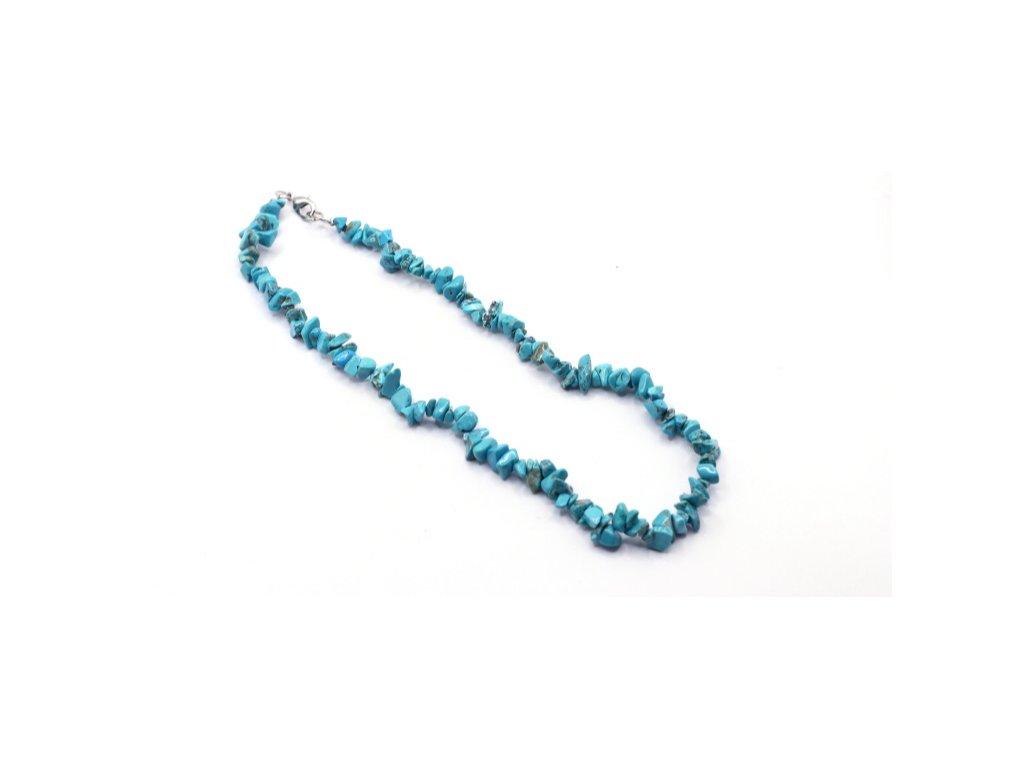 Náhrdelník je z tyrkenitu, nejde o pravý tyrkys.