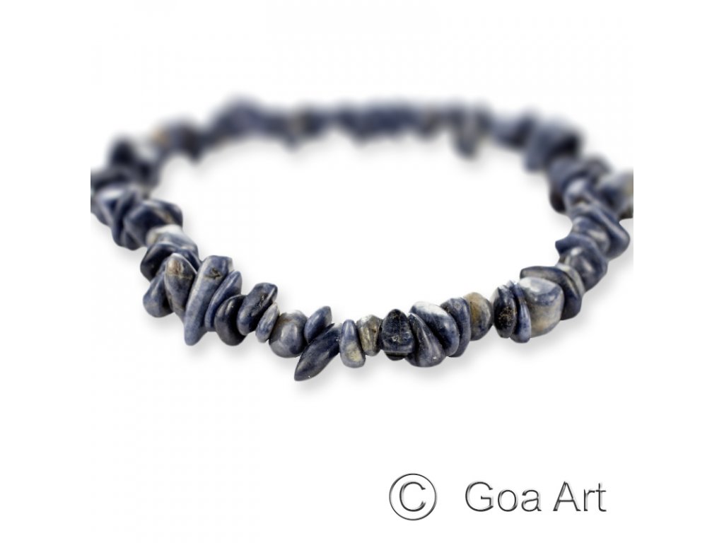 Náramok z leštených kameňov v tvare nepravidelných sekaných zŕn, navlečených na gumičke.