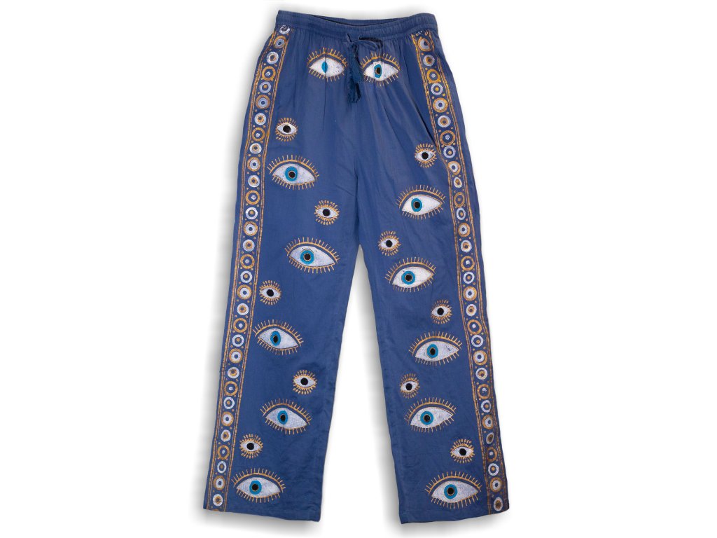 Nomád Sari - Nohavice Ručne Maľované - Zlaté oko - Modré L/XL