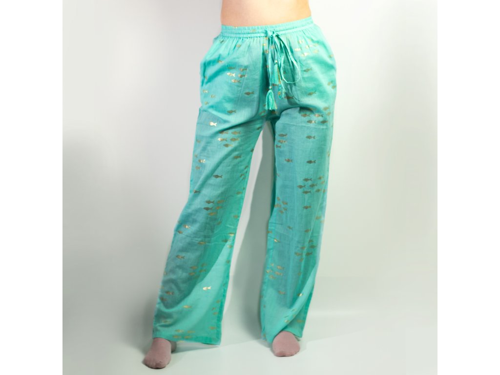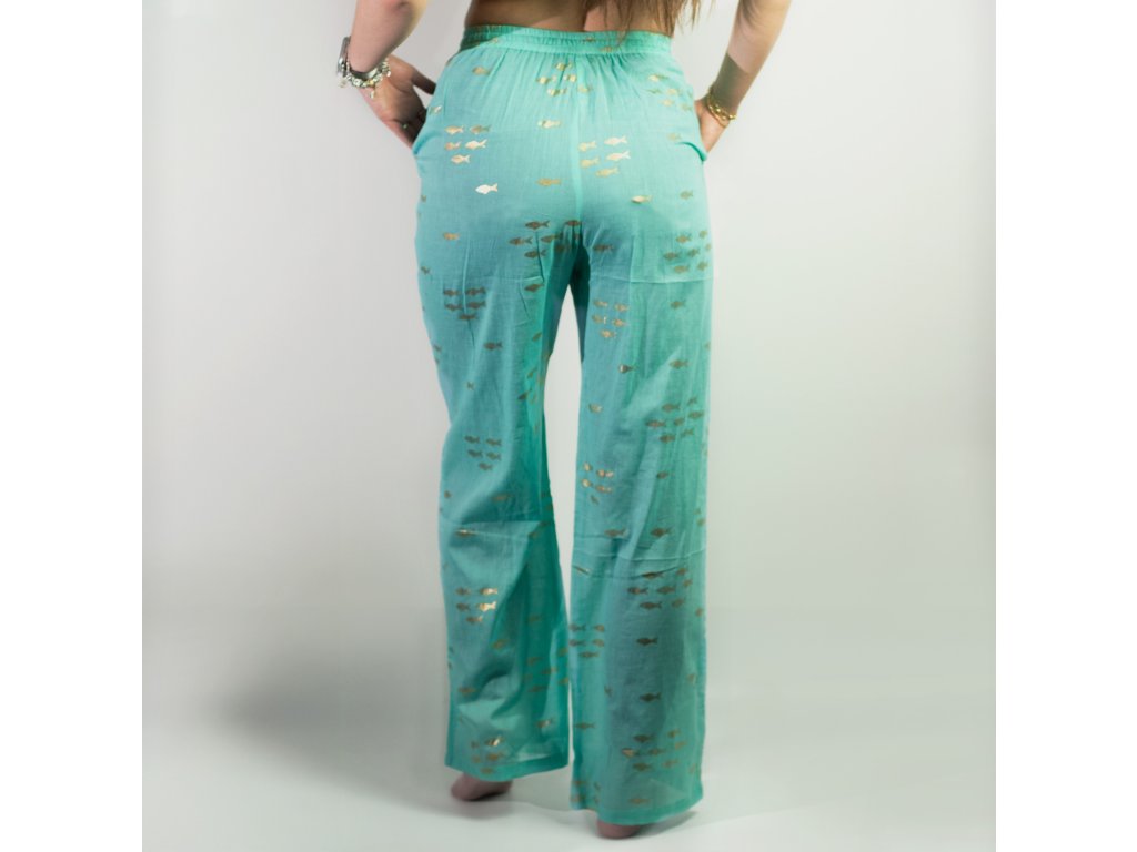 Nomád Sari - Nohavice Ručne Maľované - Zlaté ryby - Tyrkysové L/XL