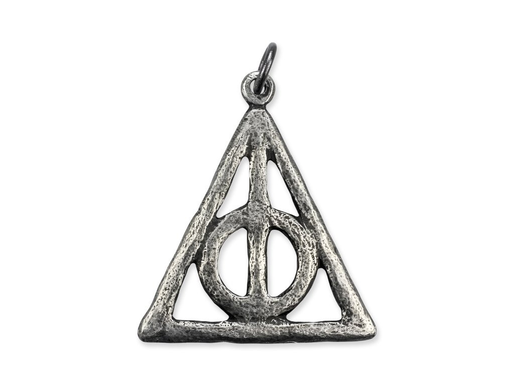 Trojuholník symbolizuje Neviditeľný plášť – ukrýva nositeľa pred svetom. Kruh je symbolom Kameňa mudrcov – oživuje mŕtvych a palička symbolizuje Bazový prútik – najmocnejší, aký kedy bol vyrobený.