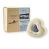 Prírodné, ručne robené mydlo s harmančekom a kozím mliekom v tvare srdiečka v papierovej krabičke.