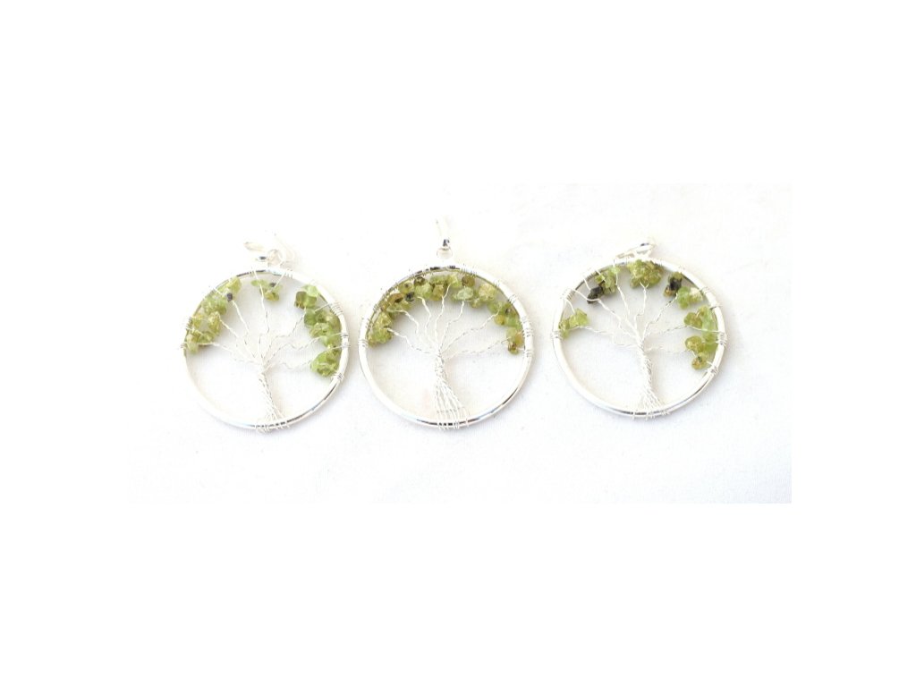 Strom života - Olivín Egypt - prívesok postriebrený 3,5 cm