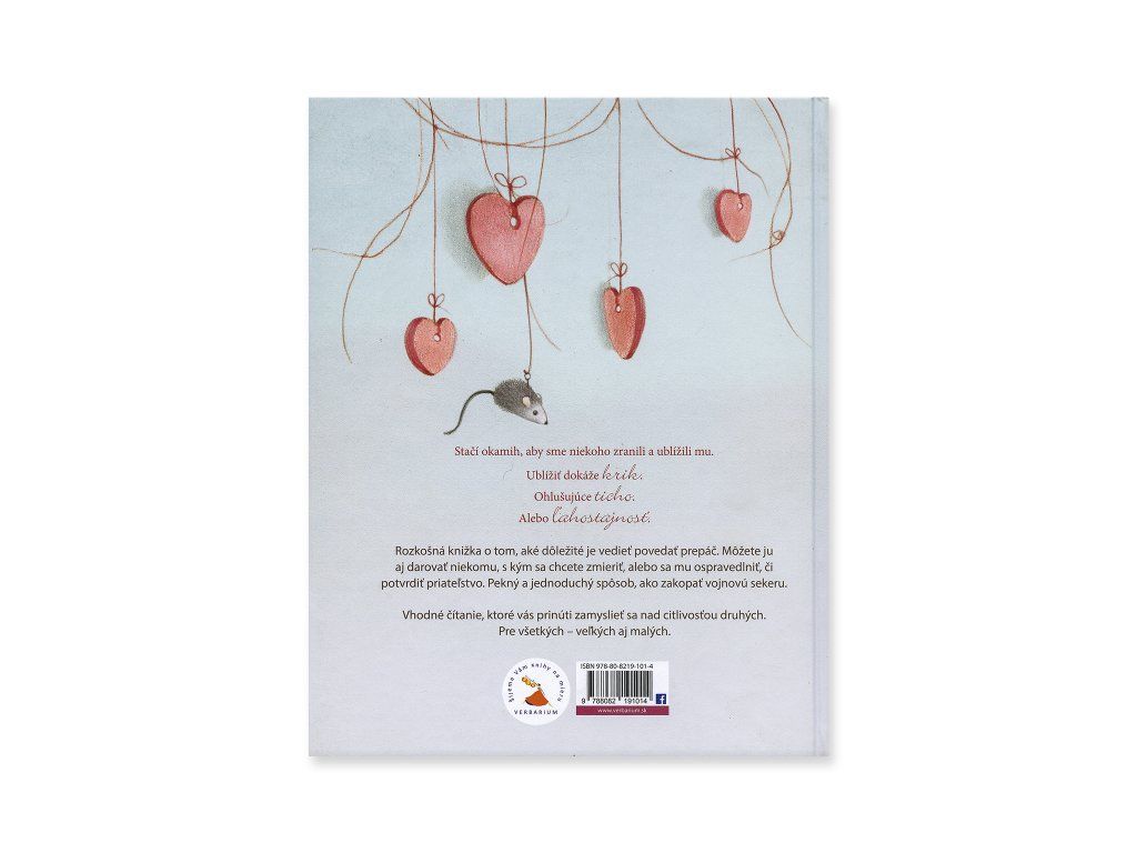 Stačí okamih, aby sme niekoho zranili a ublížili mu. Ublížiť dokáže krik. Ohlušujúce ticho. Alebo ľahostajnosť. Rozkošná knižka o tom, aké dôležité je vedieť povedať prepáč. Môžete ju aj darovať niekomu, s kým sa chcete zmieriť, alebo sa mu ospravedlniť, či potvrdiť priateľstvo. Pekný a jednoduchý spôsob, ako zakopať vojnovú sekeru. Vhodné čítanie, ktoré vás prinúti zamyslieť sa nad citlivosťou druhých. Pre všetkých - veľkých aj malých.