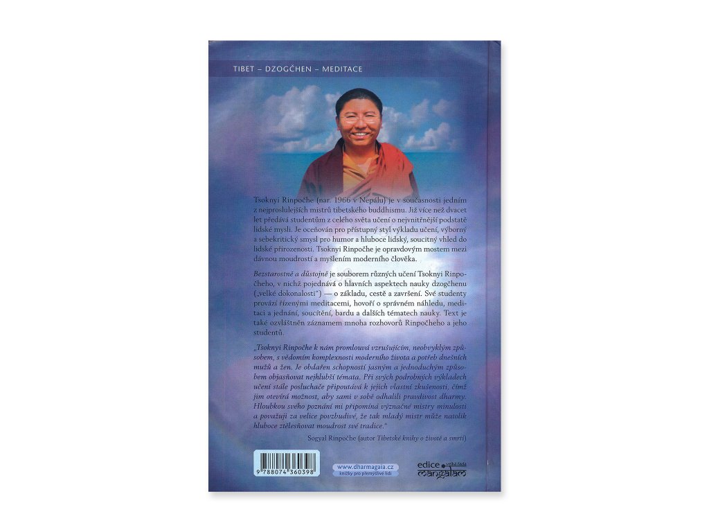 "Bezstarostně a důstojně" je súborom rôznych učení Tsoknyi Rinpočheho, v ktorom pojednáva o hlavných aspektoch náuky "dzogčhenu" („veľkej dokonalosti“) — o základe, ceste a zavŕšení. Svojich študentov sprevádza riadenými meditáciami, hovorí o správnom náhľade, meditácii a jednaní, súcítení, barde a ďalších témach náuky. Text je tiež obohatený záznamom mnohých rozhovorov Rinpočheho a jeho študentov.