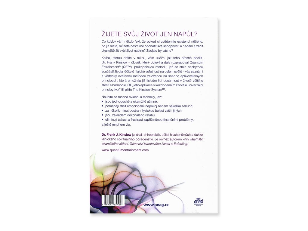 Doktor Frank Kinslow – objaviteľ a autor Kvantového unášania (QE – Quantum Entrainment), priekopníckej metódy, ktorá sa postupne stáva neoddeliteľnou súčasťou praxe odborníkov na zdravie, ale aj amatérov po celom svete – vás zoznámi s osvedčenou lekárskou metódou založenou na jednoduchých princípoch, ktoré tisíckam ľudí ukázali, ako žiť zdravšie a harmonickejšie. Túto metódu budete brať skôr ako svojho priateľa, než nejakú techniku. Neprichádza totiž zvonku, ale zvnútra, z naj skrytejších kútov mysle kde je stále pokoj a pohoda. Každodenné využitie a všeobecné princípy (Universal Principles – všeobecné princípy) QE sú tromi nosnými piliermi Kinslowovho systému.