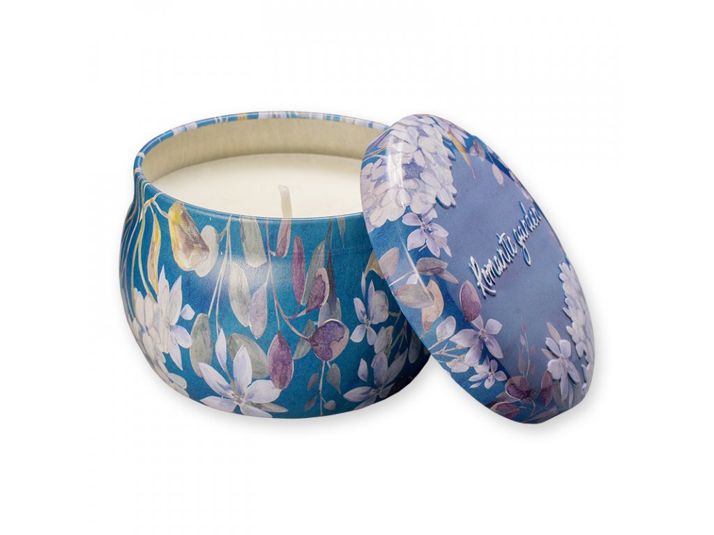 Sviečka dekoračná v plechovke Romantická záhrada - čaj a ruže 120 g
