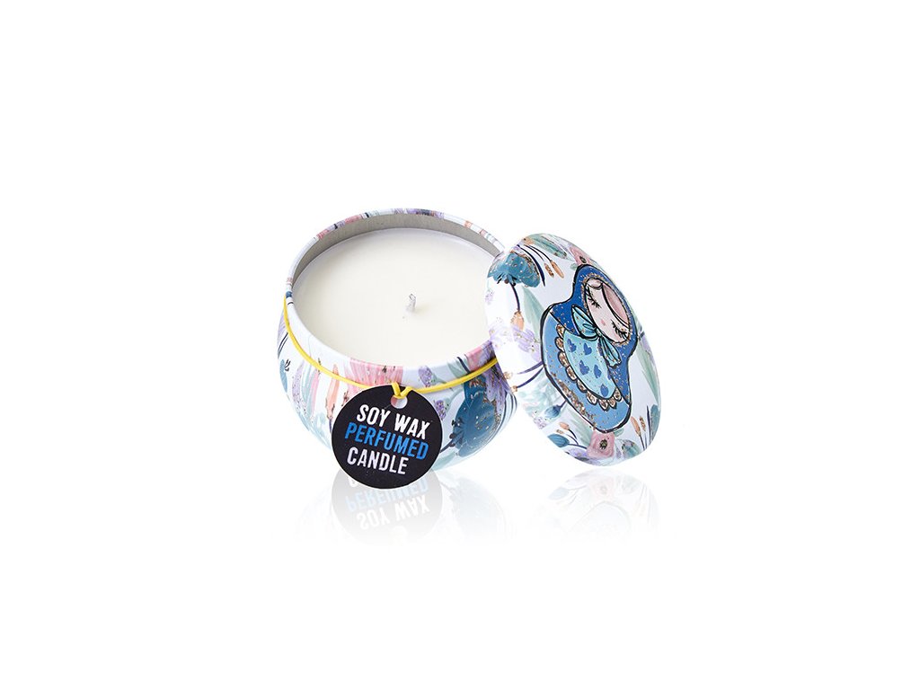 Sviečka dekoračná v plechovke Matrioška svetlo modrá 120 g