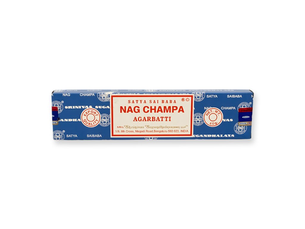 Vonné tyčinky Nag Champa nesúce meno duchovného vodcu Sai Baba, jedny z najobľúbenejších v Indii. Aromatická zmes živice, gumy, korenia, kvetov a olejov s nádhernou arómou, vhodné k meditácii a relaxácii.