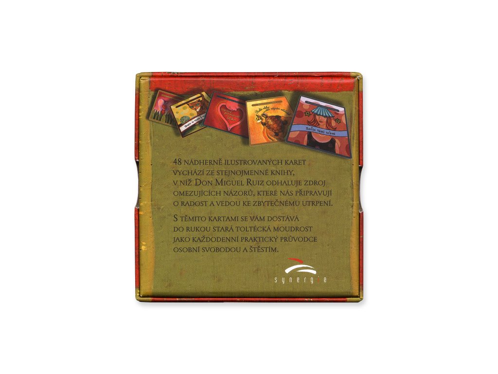 48 nádherne ilustrovaných kariet vychádza z knihy s rovnakým názvom, v ktorej Don Miguel Ruiz odhaľuje zdroj obmedzujúcich názorov, ktoré nás pripravujú o radosť a vedú nás k zbytočnému trápeniu.