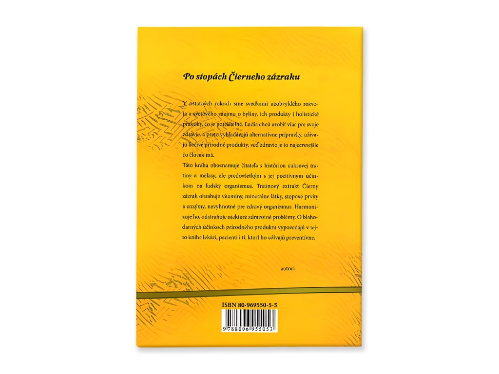 Táto kniha oboznamuje čitateľa s históriou cukrovej trstiny a melasy, ale predovšetkým s jej pozitívnym účinkom na ľudský organizmus. Trstinový extrakt Čierny zázrak obsahuje vitamíny, minerálne látky, stopové prvky a enzýmy, nevyhnutné pre zdravý organizmus. Harmonizuje ho, odstraňuje niektoré zdravotné problémy. O blahodárnych účinkoch prírodného produktu vypovedajú v tejto knihe lekári, pacienti i tí, ktorí ho užívajú preventívne.